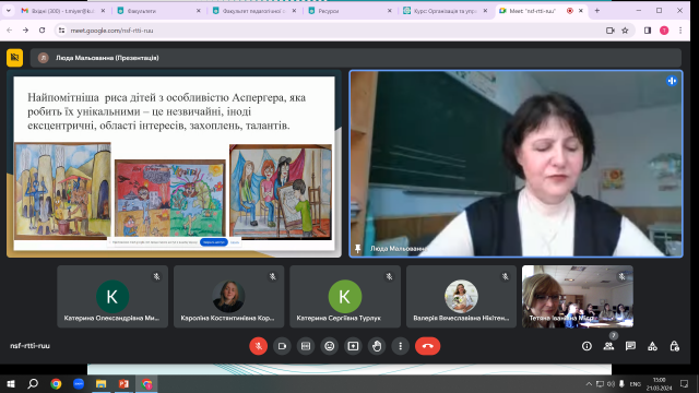 Дякуємо Мальованній Людмилі Миколаївні, вчителю вищої категорії, старшому вчителю, вчителю-дефектологу дитячого центру корекції та розвитку «Bodi&Brain» під керівництвом Сергія Бондаренка, вчителю початкових класів гімназії № 179 міста Києва за змістовне, різнобічне, актуальне й професійне представлення порад щодо практичної реалізації психолого-педагогічного супроводу дитини з особливими освітніми потребами в умовах початкової школи.