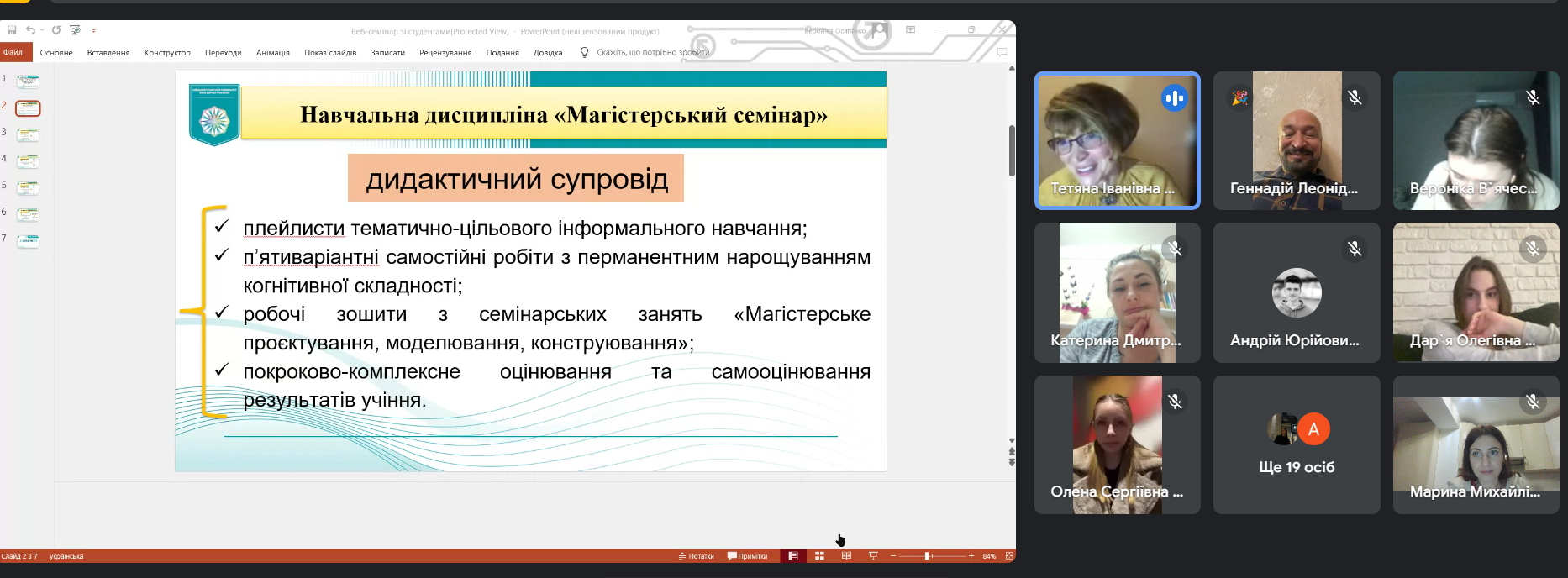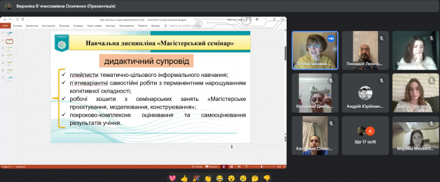 Під час вебсемінару було презентовано та обговорено такий дидактичний супровід викладання навчальної дисципліни «Магістерський семінар», як: