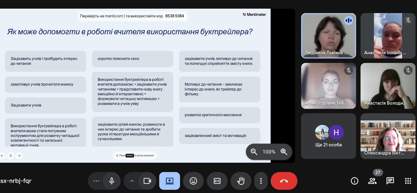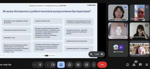 10 червня 2025 року студенти груп ПОб-1-24-4.0д, ПОб-2-24-4.0д спеціальності 013 Початкова освіта Факультету педагогічної освіти Київського столичного університету імені Бориса Грінченка взяли участь у засіданні Наставницької студії НУШ «Буктрейлер як інструмент активізації читацької діяльності молодших школярів».