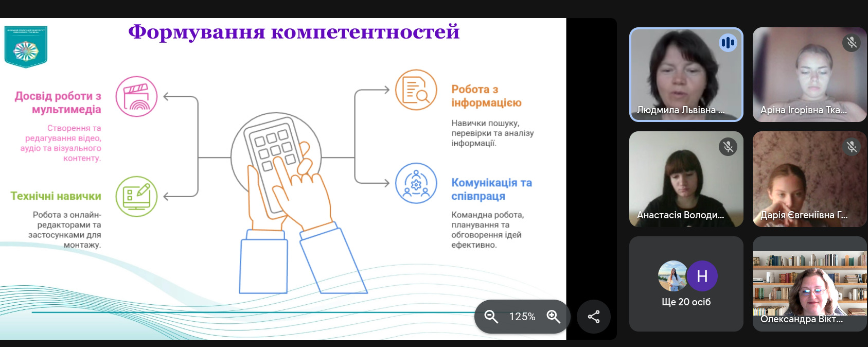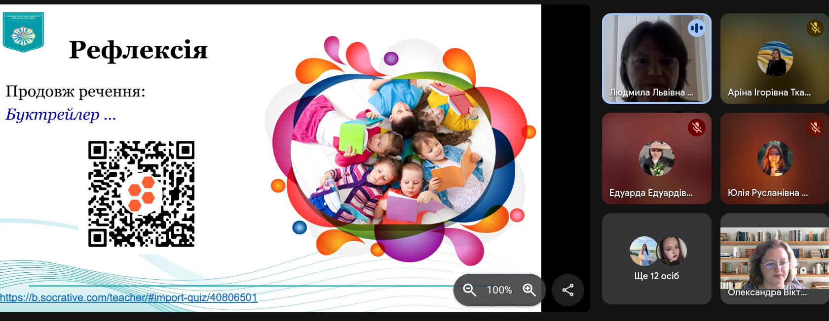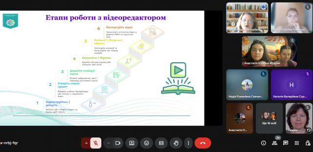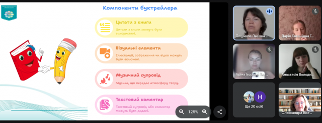 На засіданні наставницької студії учасники дізналися про специфіку буктрейлерів, дидактичні можливості їх застосування на уроках читання в початкових класах Нової української школи, ознайомилися з технологією створення цього важливого освітнього медіапродукту, а також з алгоритмами роботи з відеоредактором на цифрових платформах (Canva, Clipchamp, Animoto, FlexClip, Lumen5, Pictory та ін.) для створення реклам і анонсів книжок. Під керівництвом модераторів майбутні педагоги успішно попрацювали в групах, створили власні буктрейлери (на збірки для дітей «Бузиновий цар» Ліни Костенко, «Книжечка для Дзвінки» Ігоря Калинця, «У Неквапи білі лапи» Миколи Вінграновського, «Як гусак говорив: Так-так-так» Івана Світличного) для впровадження в НУШ, проаналізували педагогічні кейси застосування створених медіапродуктів у шкільній практиці. Здобувачі вищої освіти навчилися розробляти сценарії для буктрейлерів, добирати влучні цитати й ілюстрації, формулювати цікаві й захопливі питання для реклами дитячої книжки та презентувати створені медіапродукти в літературній галузі початкової освіти НУШ.