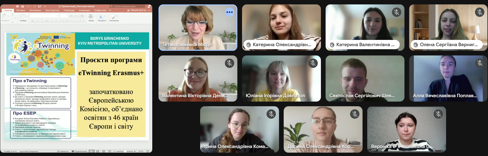 12 червня 2025 року для здобувачів другого (магістерського) рівня вищої освіти ОПП 013.00.01 Початкова освіта Факультету педагогічної освіти Київського столичного університету імені Бориса Грінченка в межах викладання модуля «Проєктування інноваційної педагогічної діяльності» освітньої компоненти «Інноватика в педагогічній діяльності» відбулося гостьове практичне заняття «Інноваційна педагогічна діяльність: міжнародний рівень педагогічного проєктування».